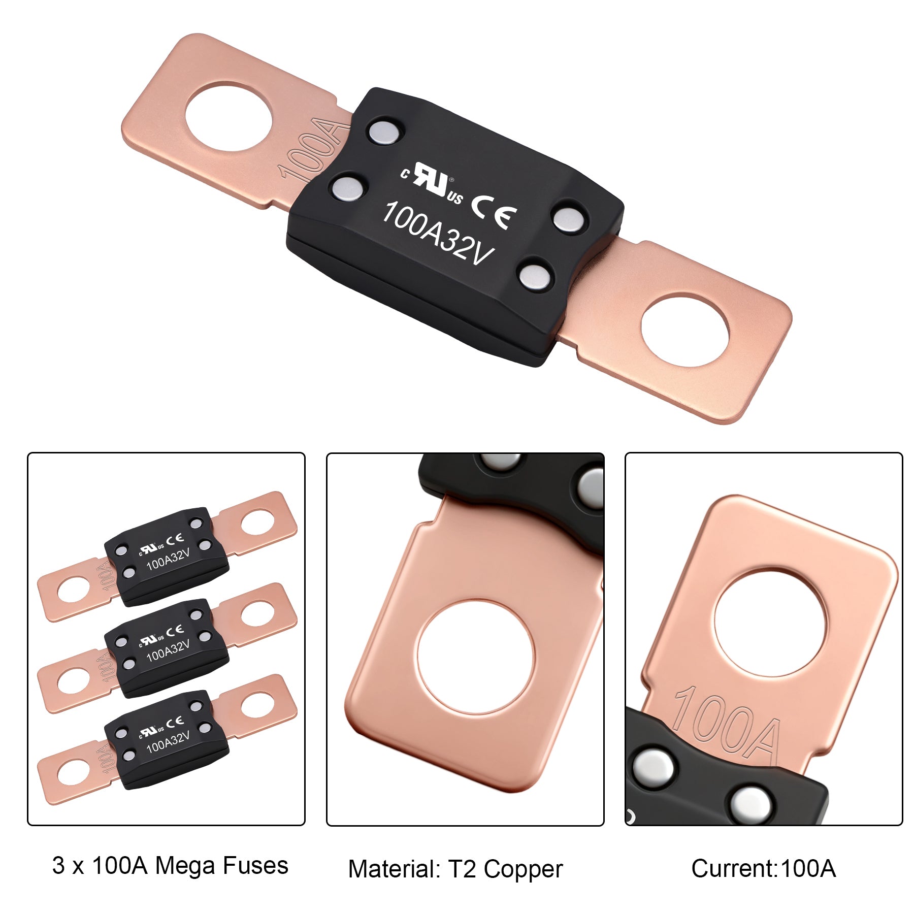 Weasch 100A MEGA/AMG Fuse, UL Certification, High Current Bolt Mount Automotive 100 Amp for Cars, Trailers, Trucks, Buses, Caravans, Boats-3
