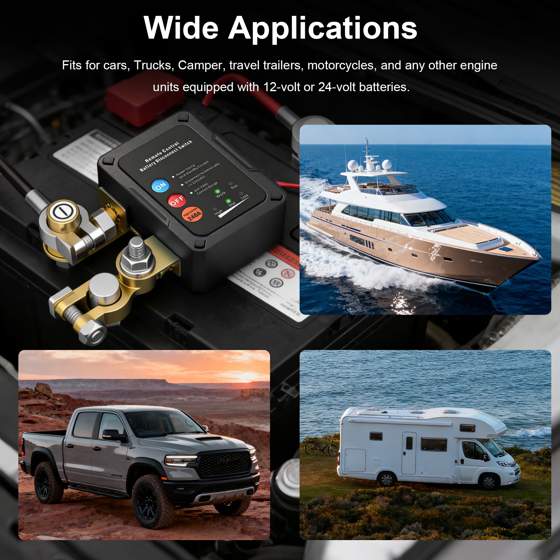 Weasch  12V Remote Battery Disconnect Switch, 240A Smart Voltage Control Battery Kill Switch for Car Anti Theft Battery Shut Off Switch-2