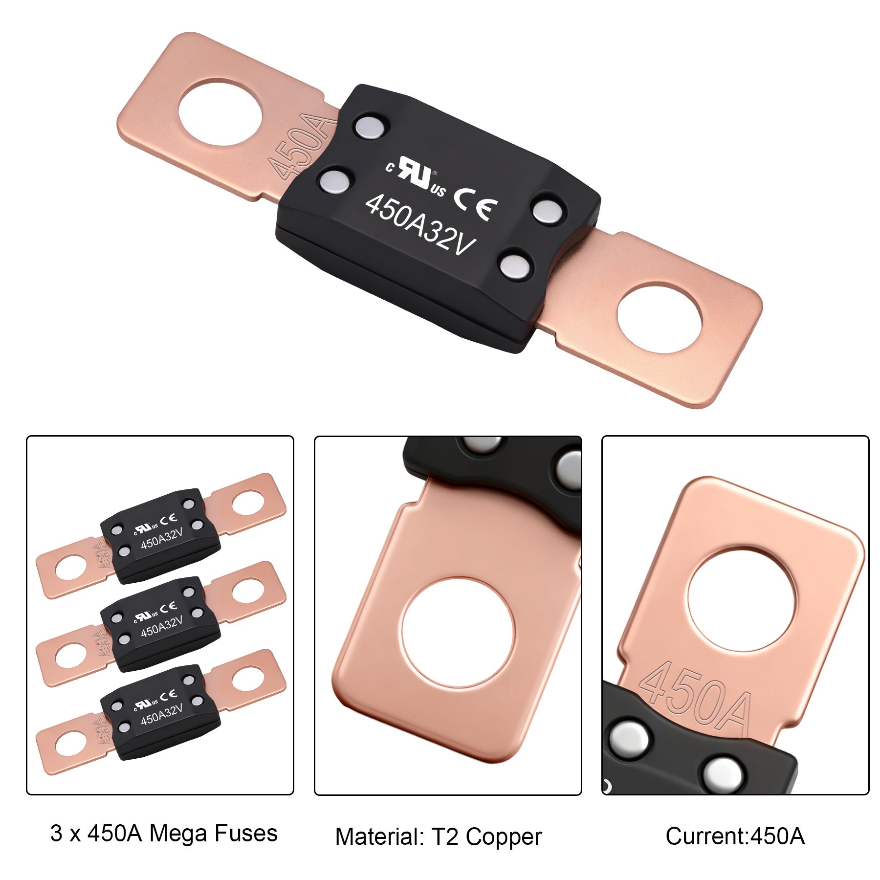 Weasch 450A MEGA/AMG Fuse, UL Certification, High Current Bolt Mount Automotive 450 Amp for Cars, Trailers, Trucks, Buses, Caravans, Boats-4