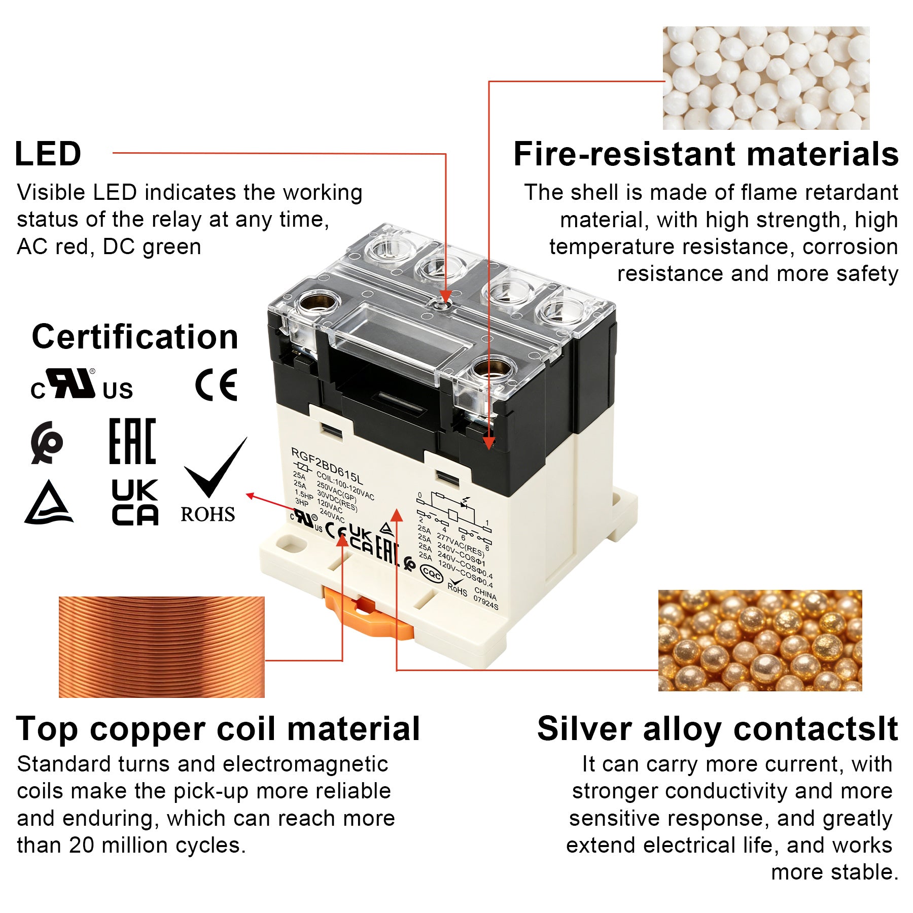 • 【Superior Quality】This relay shell is made of flame retardant material, with high strength, high temperature resistance, corrosion resistance and more safety . Standard turns and electromagnetic copper coil make the Pick-up more reliable and enduring, Long service life, up to 50 million cycles or more. Visible LED indicates the working status of the relay at any time.